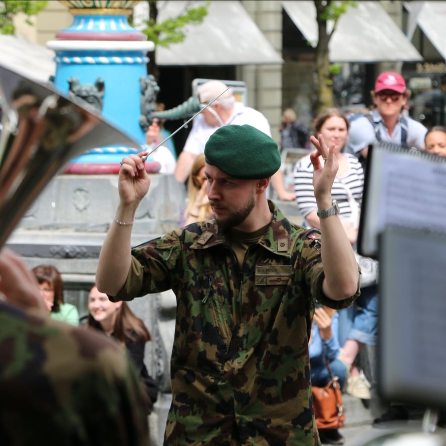 Das Zentralschweizer Fernsehen hat Anfang des Jahres das Militärspiel Ter Div 2 der Schweizer Armee begleitet. Entstanden ist auch ein Porträt über den Dirigenten, Oberwachtmeister Robin von Moos. Im Gespräch geht es um die Militärmusik, Schwierigkeiten bei der Aufnahme-Prüfung und um Zukunftsaussichten als Musiker. Eine sehens-/hörenswerte Reportage von Tele 1!
